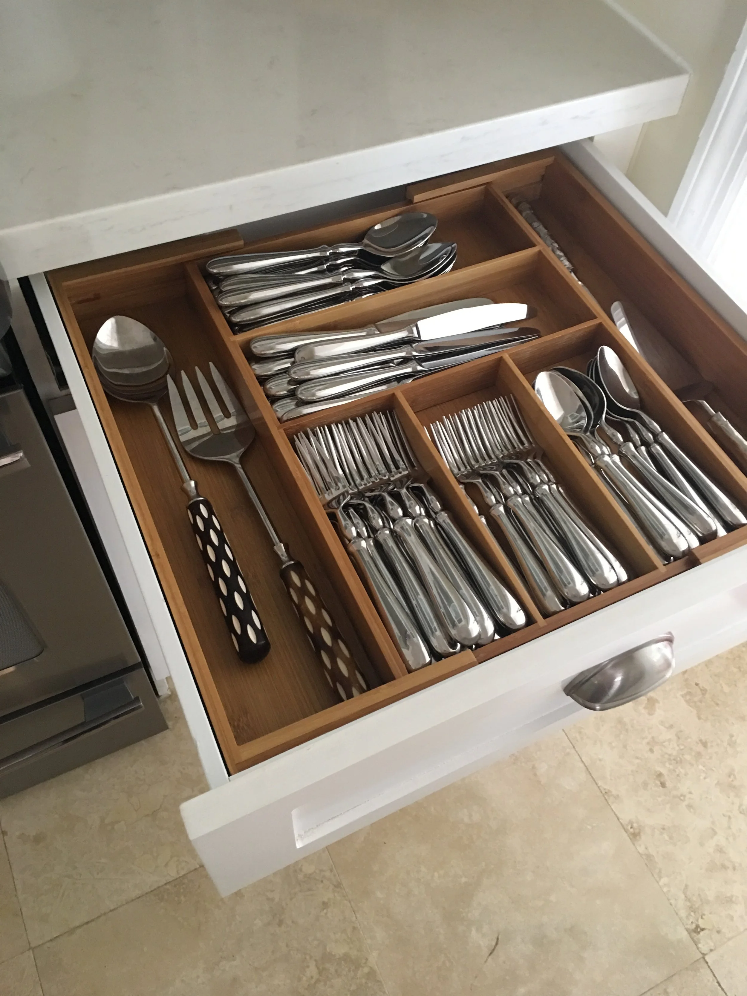 Kitchen drawers are always so messy. The Container store has this great Bamboo Expandable Tray that just went on SALE! The everyday cutlery is from Pottery Barn. A tray like this, keeps your utensils from getting mixed up with each other. This will make it easier for your kids to help you set the dinner table.