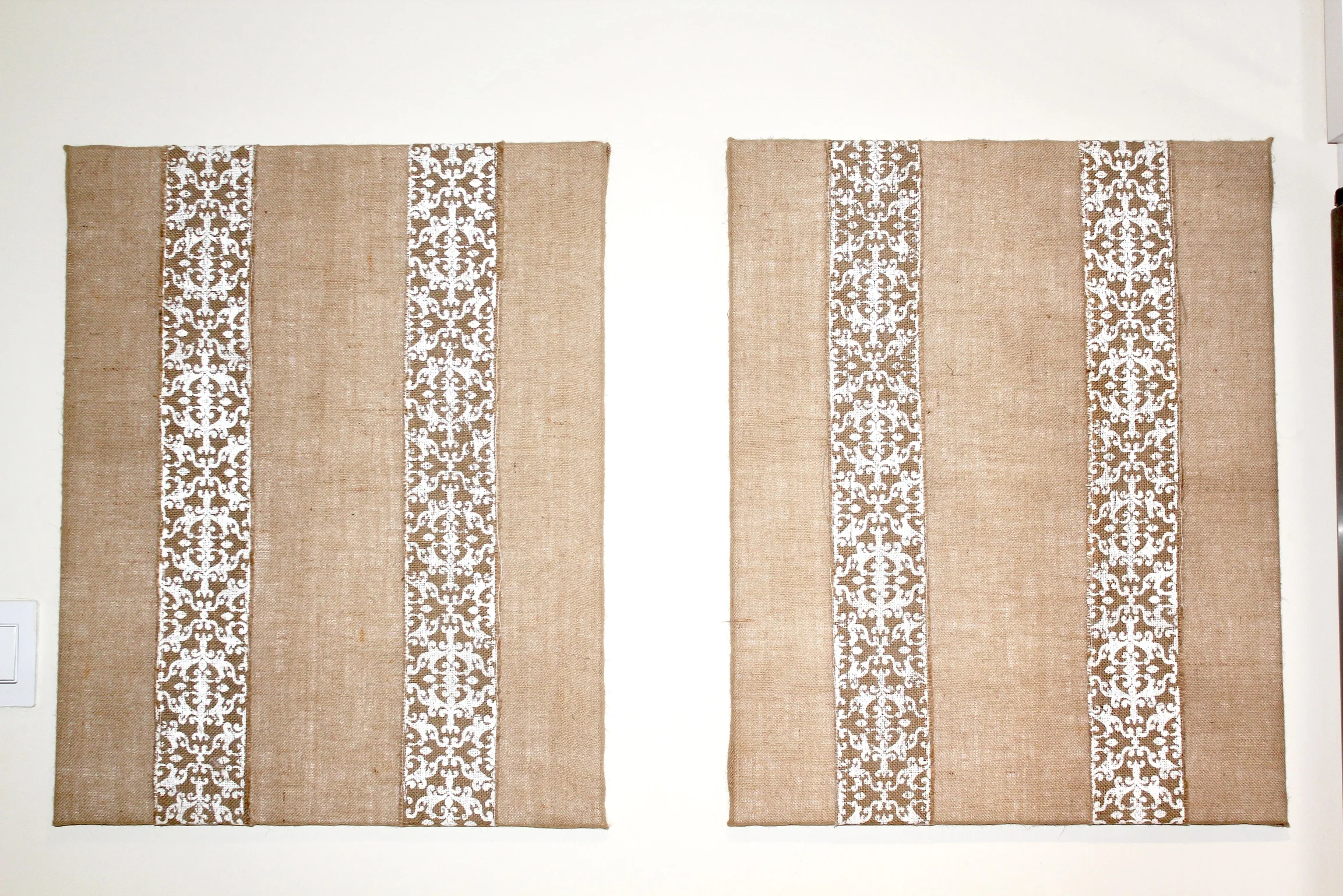 Step 1: Buy an Artist Stapled Canvas, fabric, and ribbon. I bought the canvas and ribbon at Michaels because they always have coupons. Make sure the canvas is wrapped around a wooden frame. Buy the ribbon and fabric that go along with your house decor. I have my boards on a wall in my kitchen. I bought the fabric at Jo-Ann Fabric Store. They have an amazing selection and also always have great coupons. TIP - Bring the board to the fabric store to make sure you will have enough fabric. Measure twice cut once!